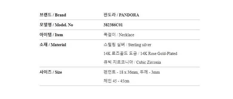 | 4. 제조사 | PANDORA |