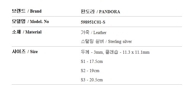 판도라 팔찌 598951C01-S 모먼트 씨쉘 클라습 터쿼이즈 브리디드 가죽 팔찌 당일발송