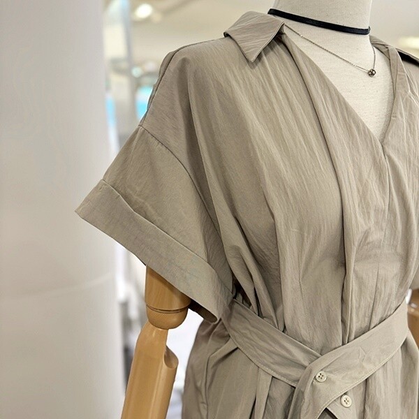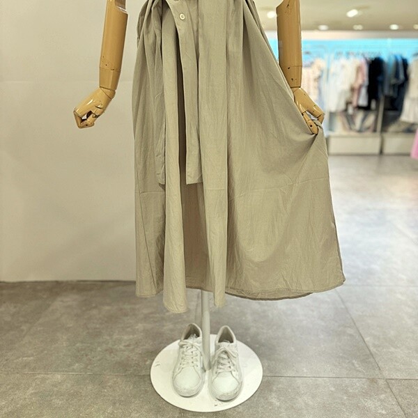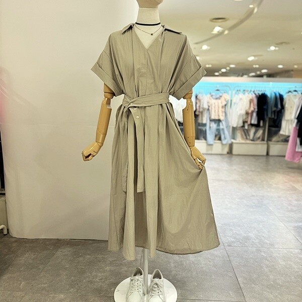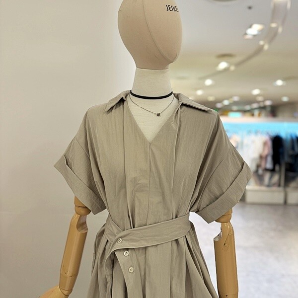 JO7OP0002B_V셔링3단추허리끈GR원피스