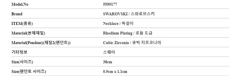 스와로브스키 목걸이 5599177 Millenia 스퀘어 여성목걸이 당일발송