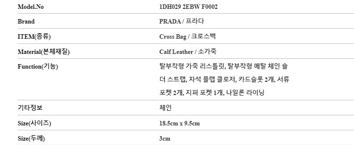 | 5. 제조사 | 프라다/(주)언커먼레이블-병행수입 |