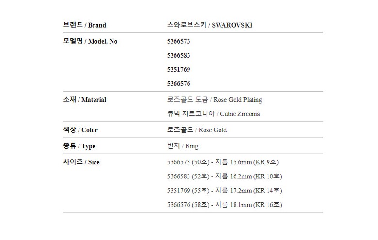 스와로브스키 반지 5366583 Vittore 52호 여성반지 당일발송