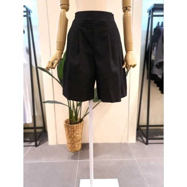 KPPTO603BK_면 뒷밴딩 핀턱 4부 팬츠 블랙