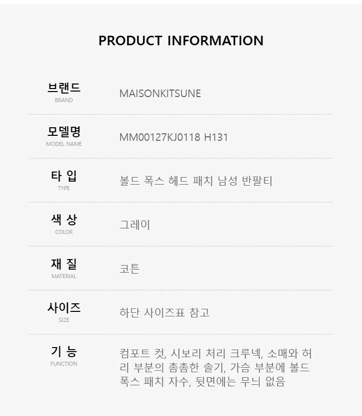 | 1. 제품 소재 (섬유의 조성 또는 혼용률을 백분율로 표시, 기능성인 경우 성적서 또는 허가서) | 상세페이지 참조 |