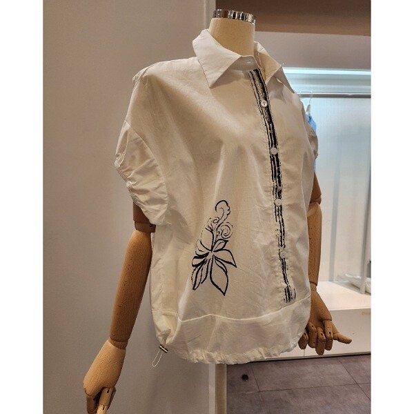 어깨너비 53cm가슴단면 56cm소매기장 8cm총 기장 58cm