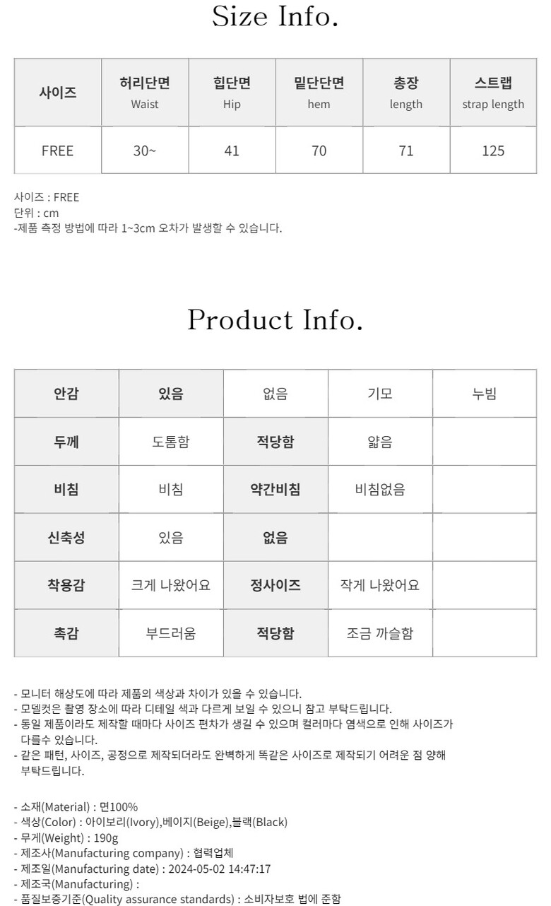- COLOR(색상) : 아이보리(Ivory),베이지(Beige),블랙(Black)