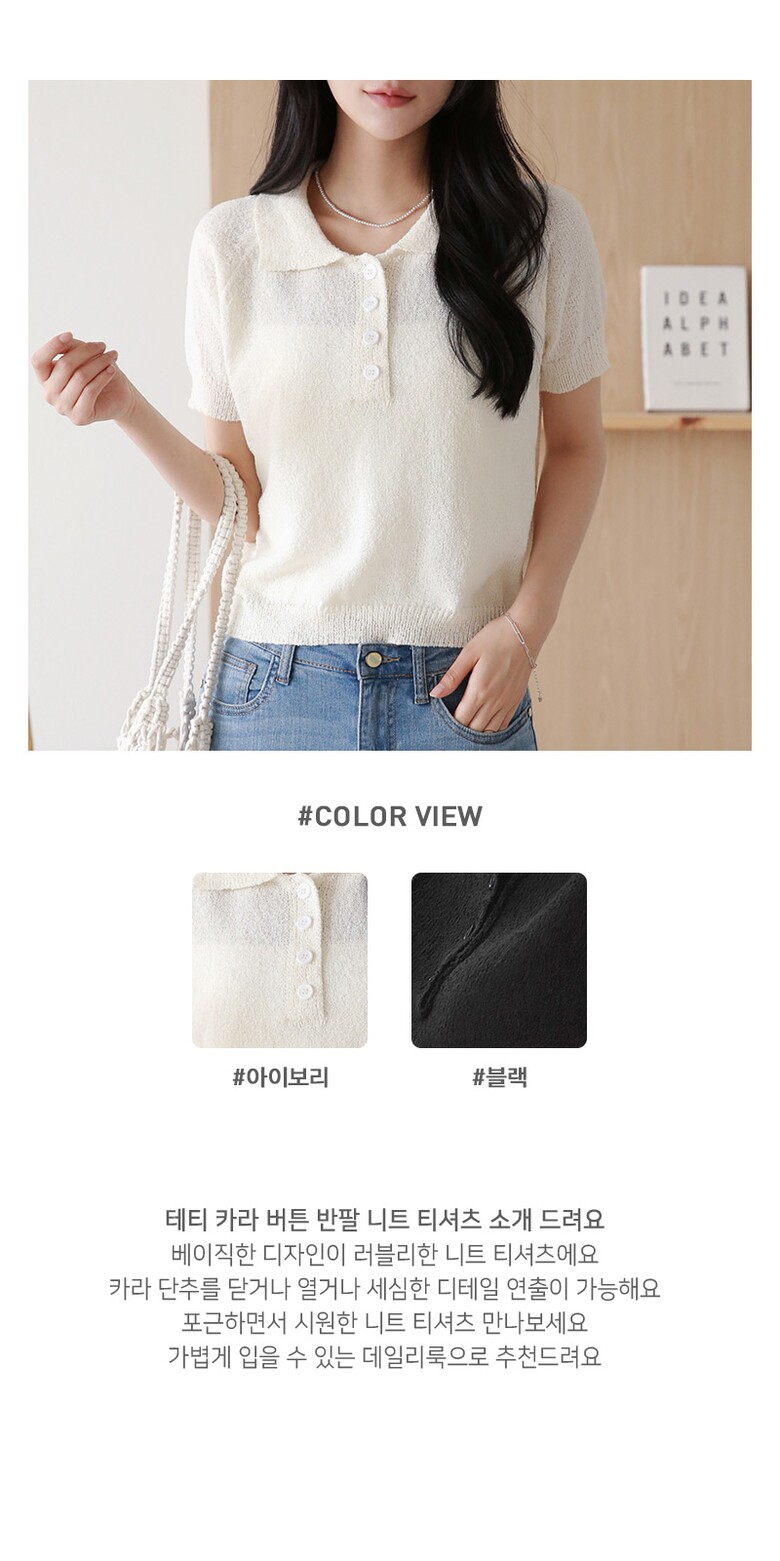 테티 카라 버튼 반팔 니트 티셔츠