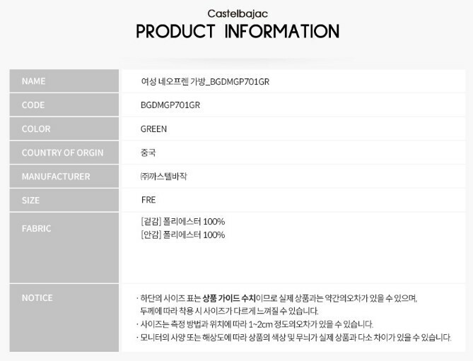 | 1. 품명 및 모델명 | 여성 네오플랜 패턴프린트 골프 파우치 |