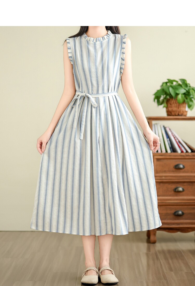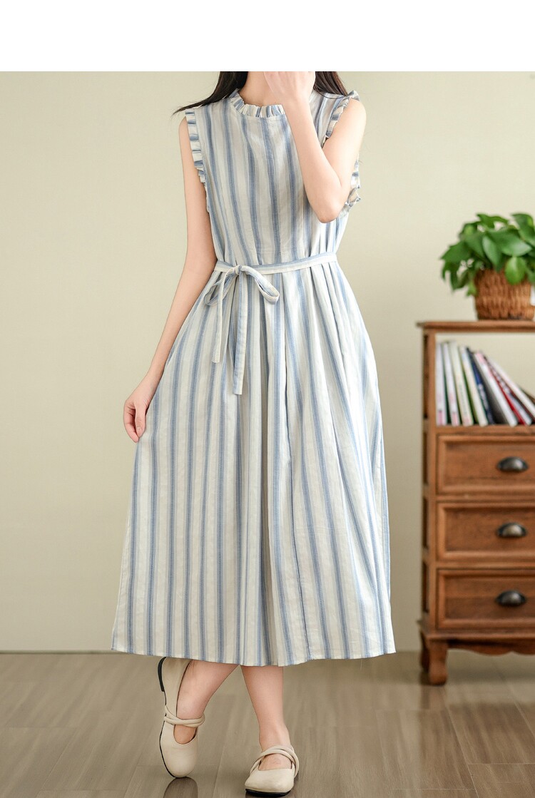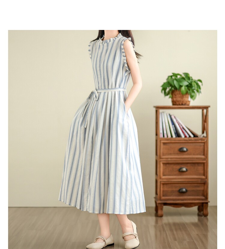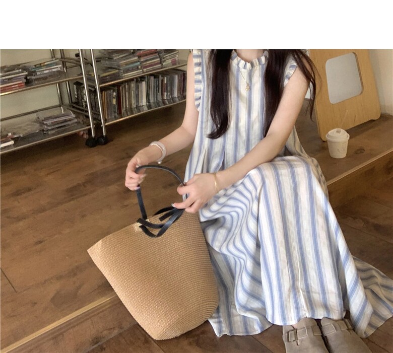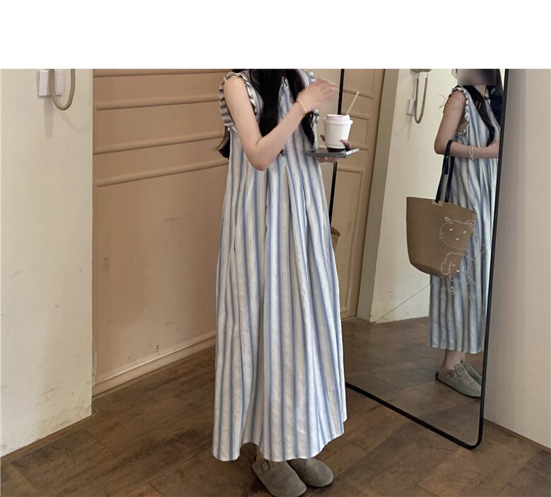 파이페 민소매 스트라이프 레이스 원피스_240626_LC29