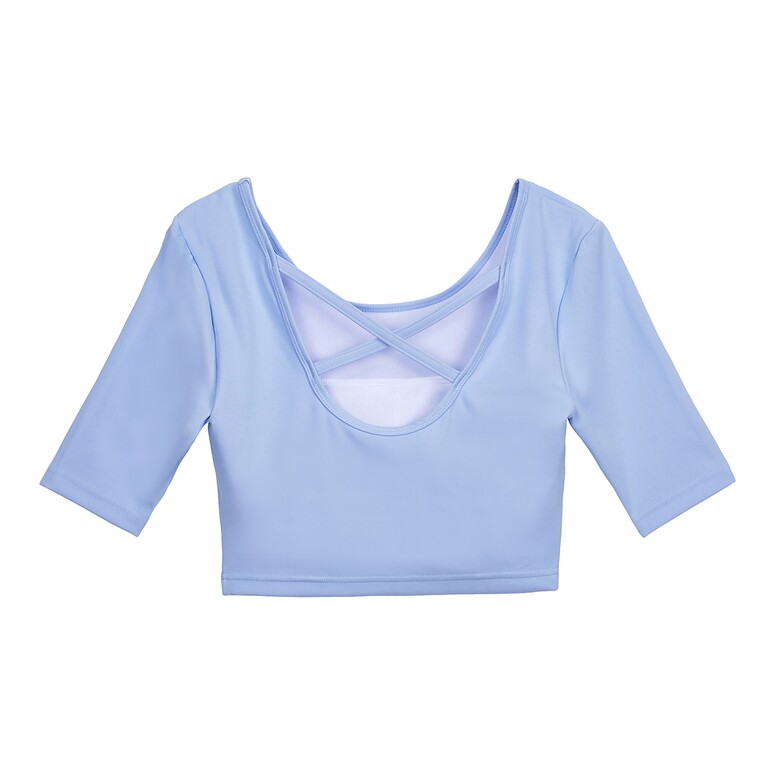 스윔 퍼포먼스 스타일 슬리브리스 크롭탑 반팔 래쉬가드입니다.