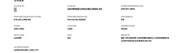1. 모델명(품번) | MLJ32ERS.CKOR |