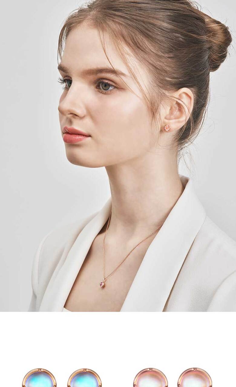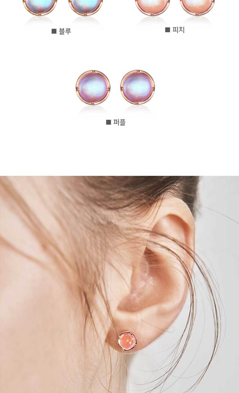 14K PLATED 문스톤 원형 심플 포스트 귀걸이 ELGPEE519