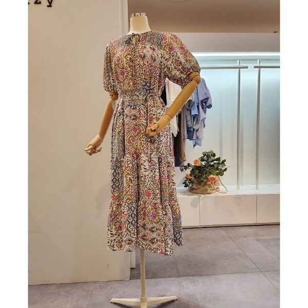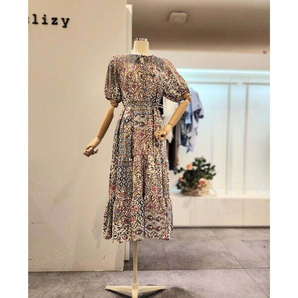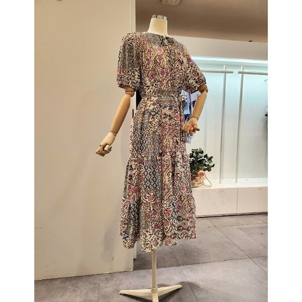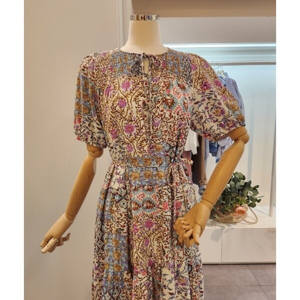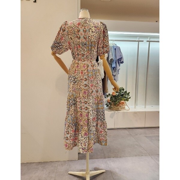 CO5WOP37_플라워 프린트 허리 끈 원피스