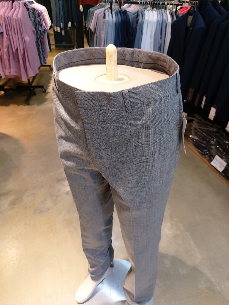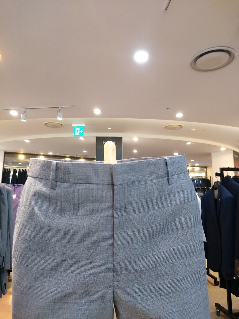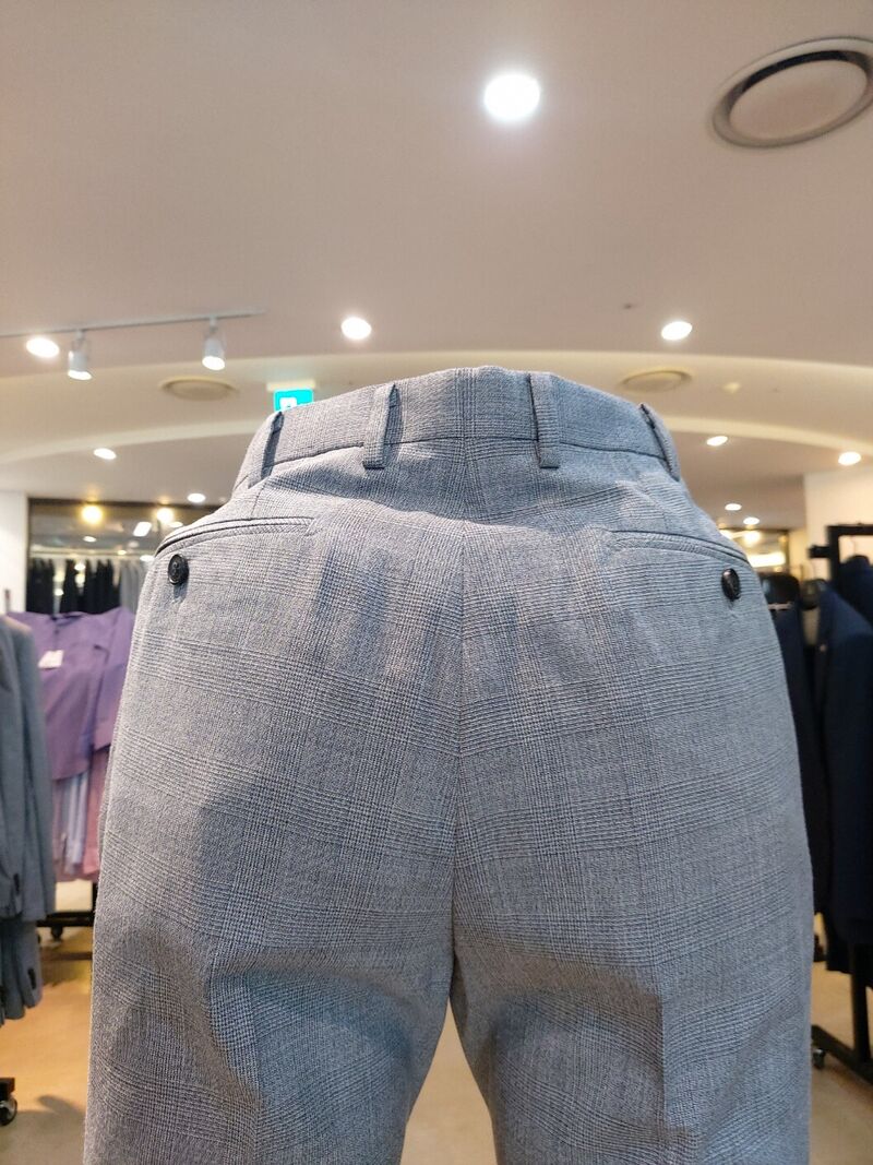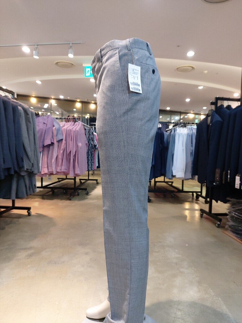 그레이 색상의 잔체크 무늬가 고급스럽고 시원해 보이는 정장팬츠입니다.