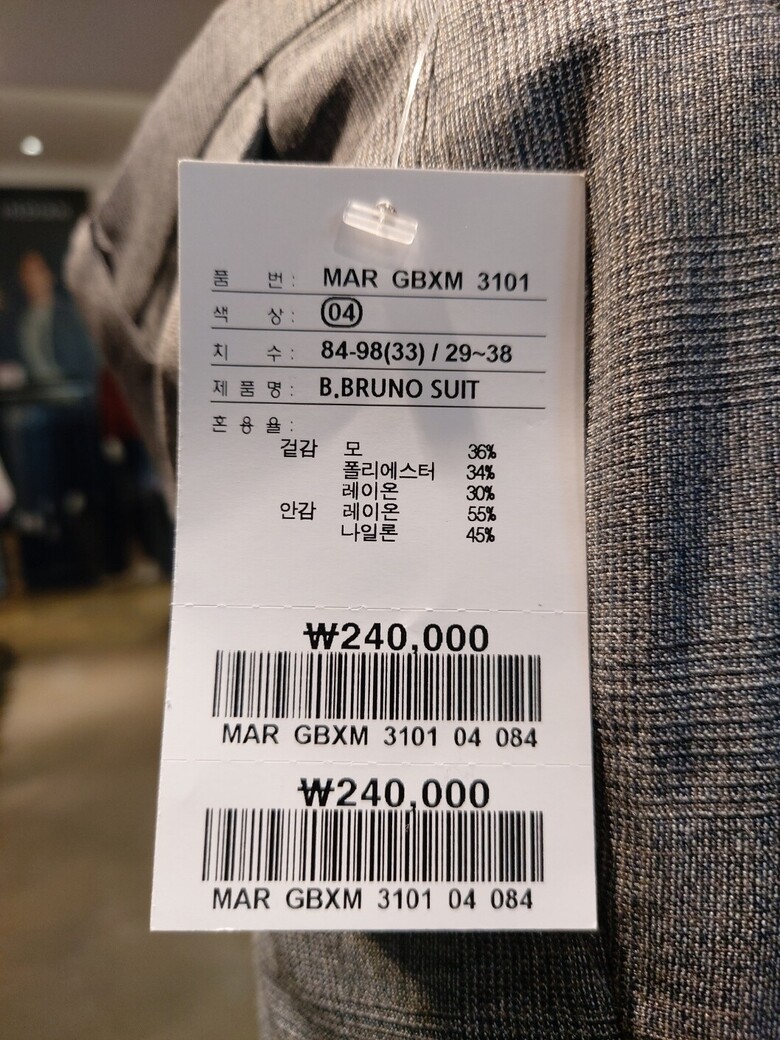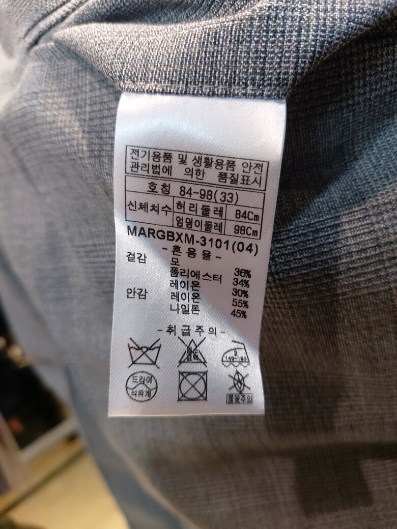 소재 : 겉감 - 모 36%|*| 폴리에스터 34%|*| 레이온 30% / 안감 - 나일론 45%|*|레이온 55%