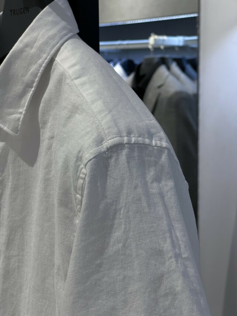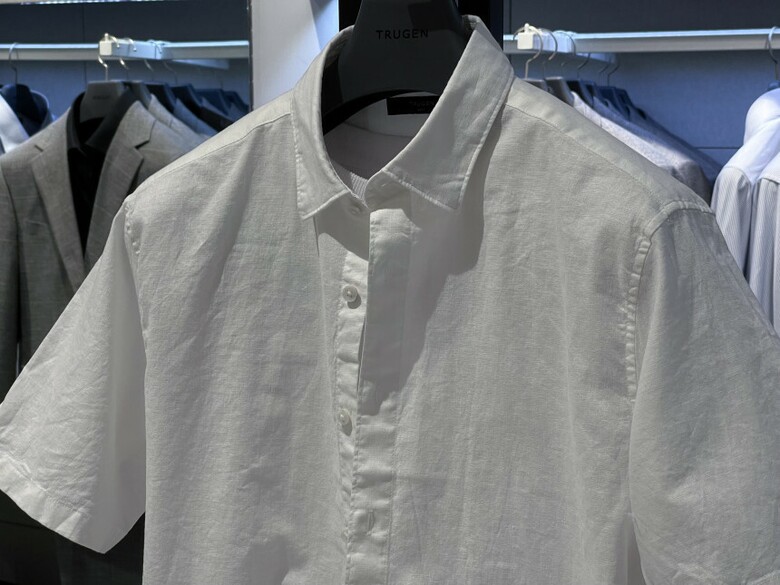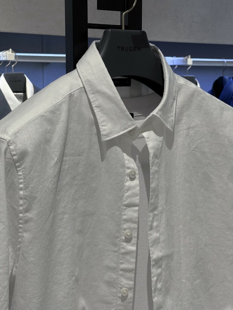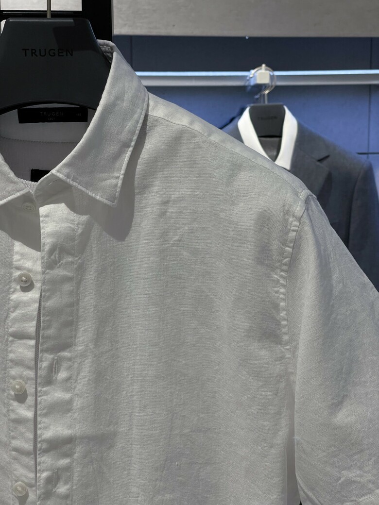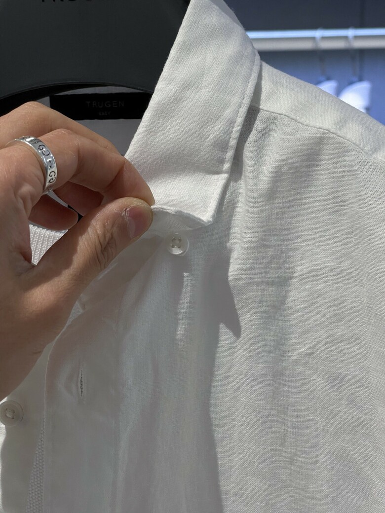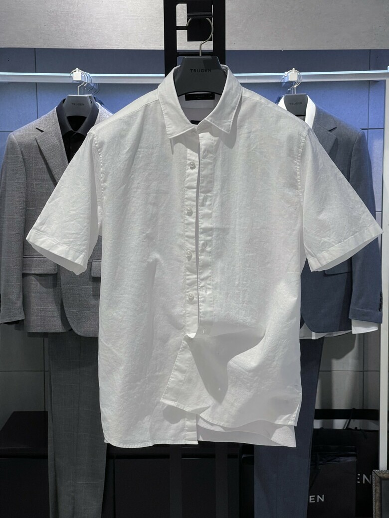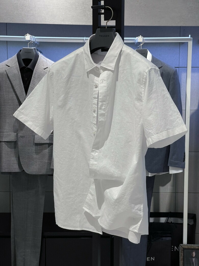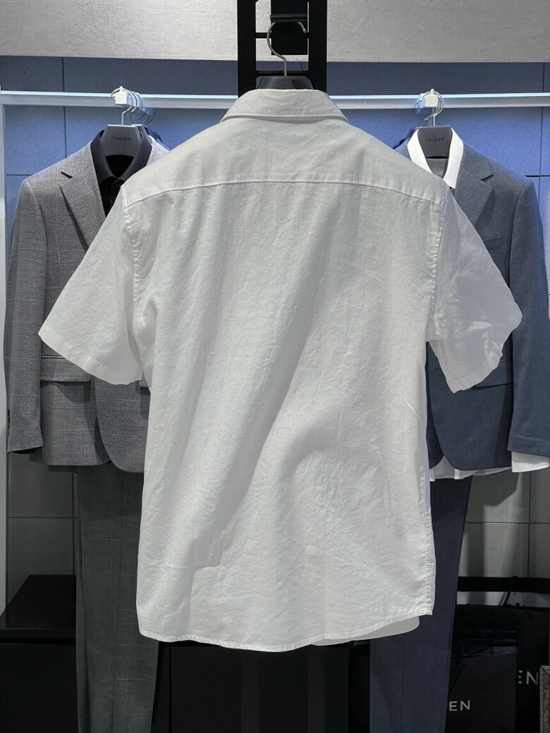 트루젠 화이트 린넨코튼 혼방 쿨워셔블 워싱 반팔 캐주얼 셔츠 426617031011-1