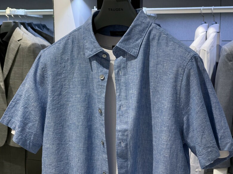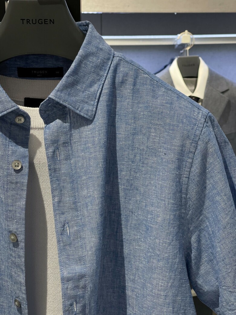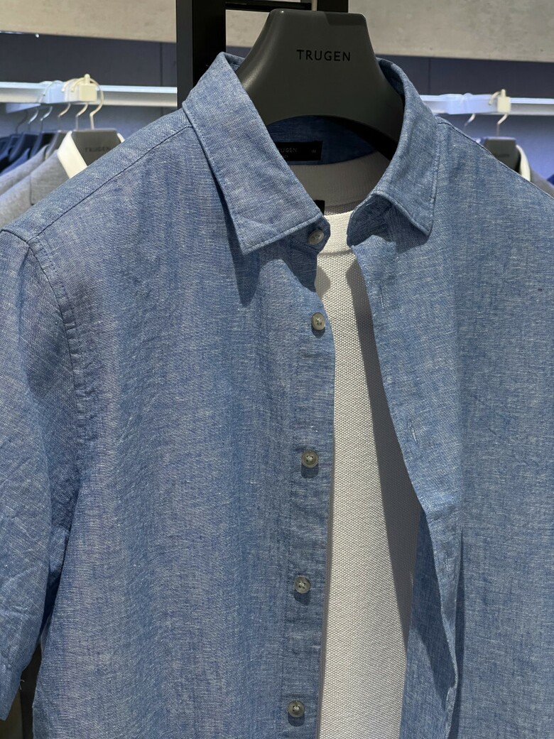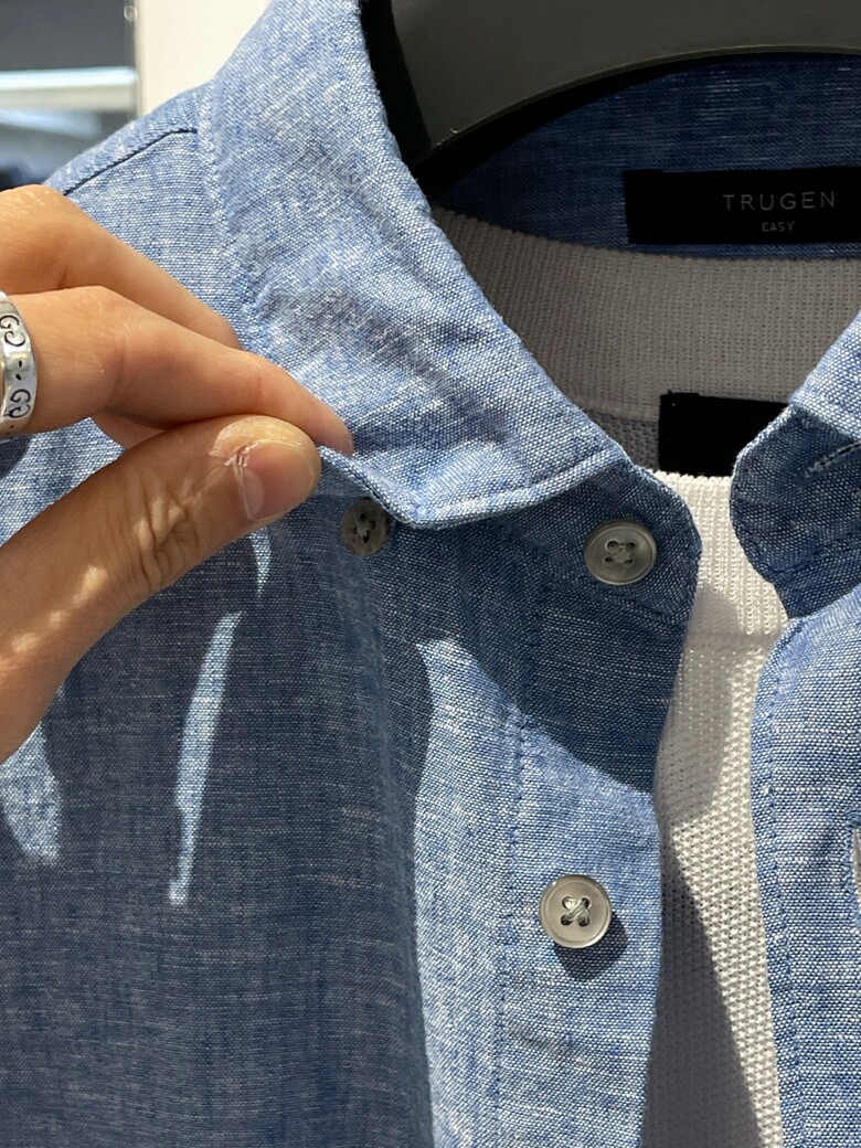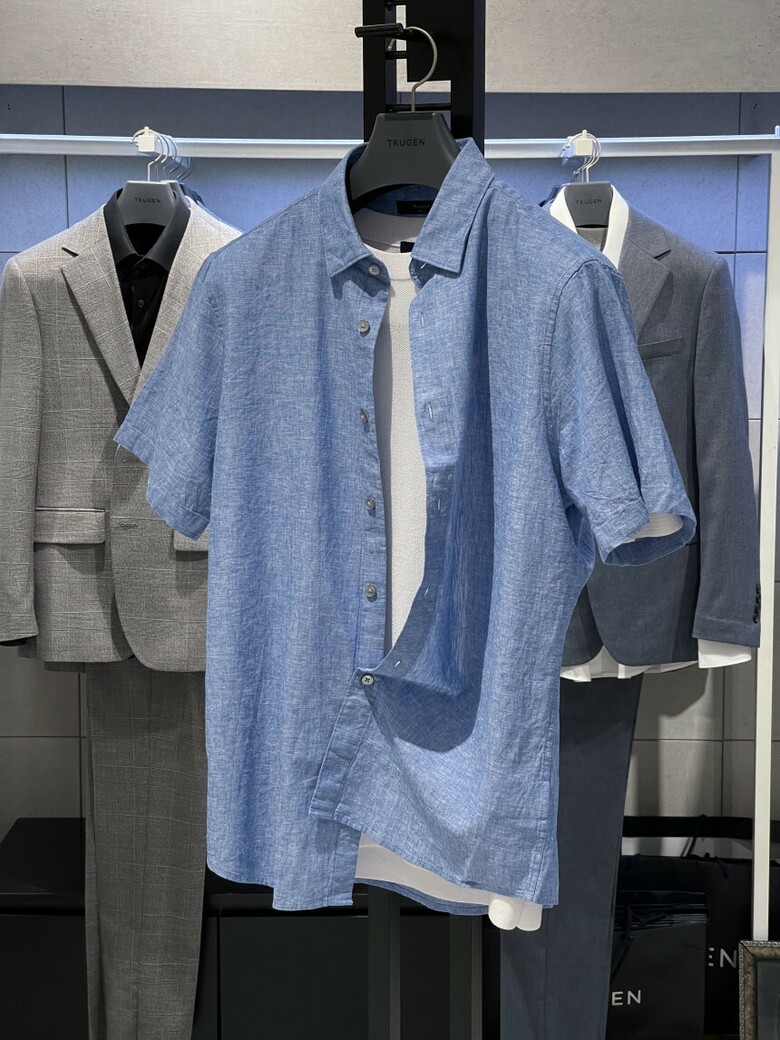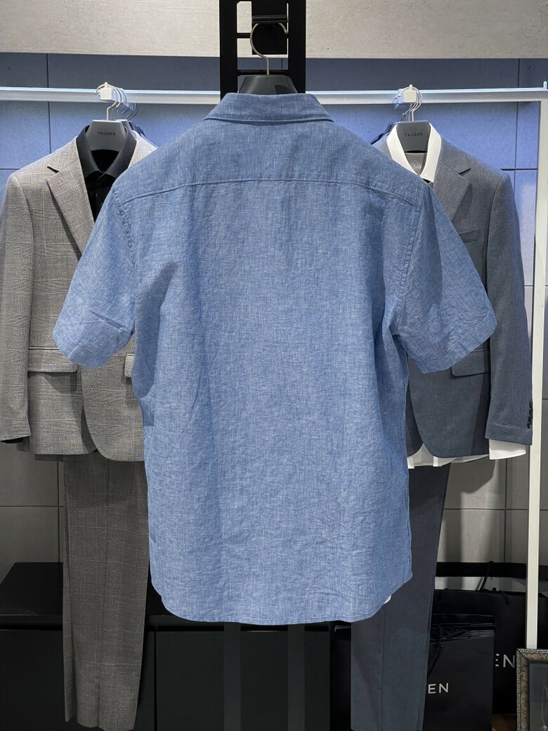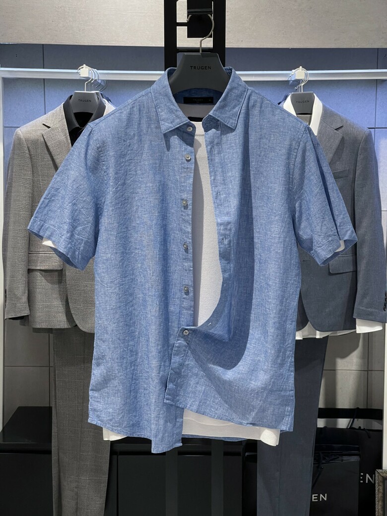 트루젠 블루 린넨코튼 혼방 쿨워셔블 워싱 반팔 캐주얼 셔츠 426617031093-1