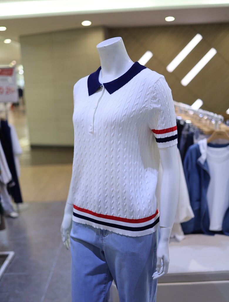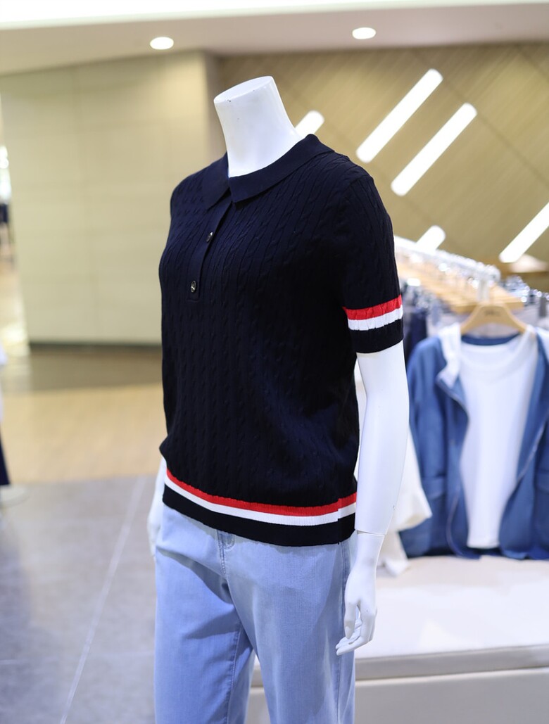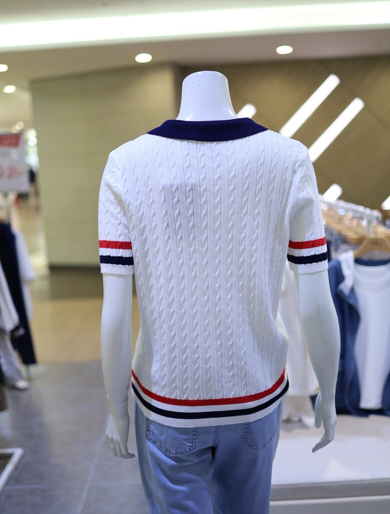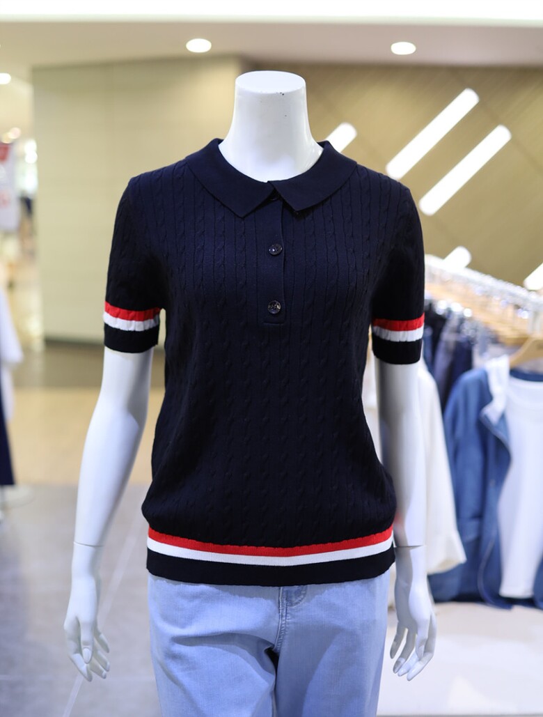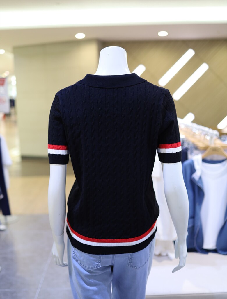 여성 미니카라 상의 버튼 케이블 반팔 니트 DQCPKR230