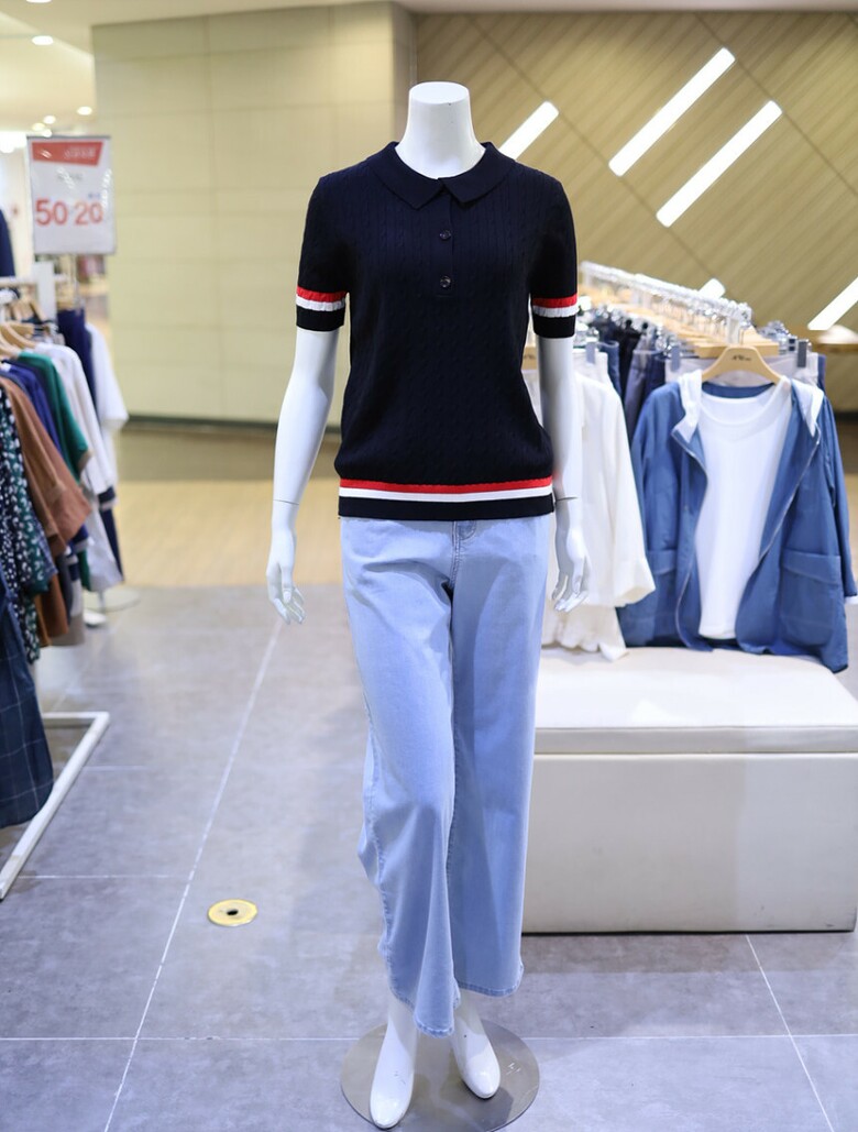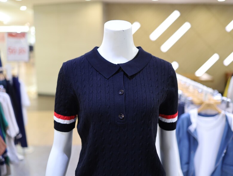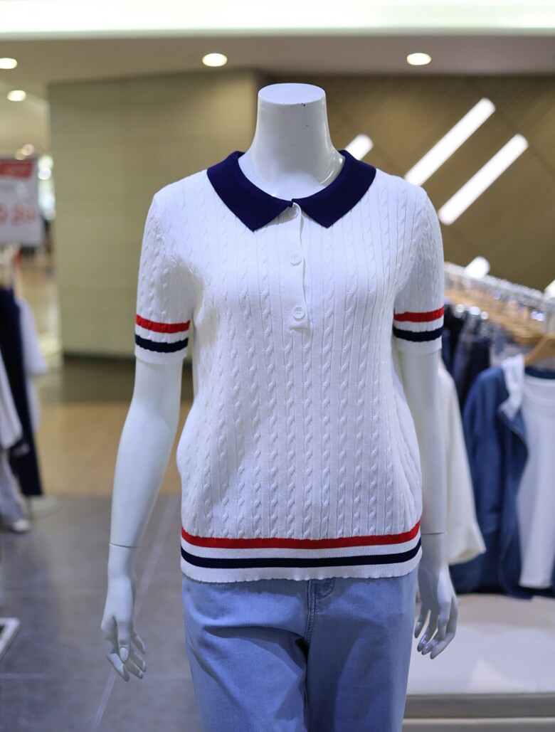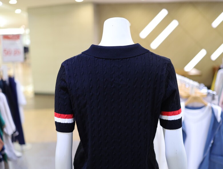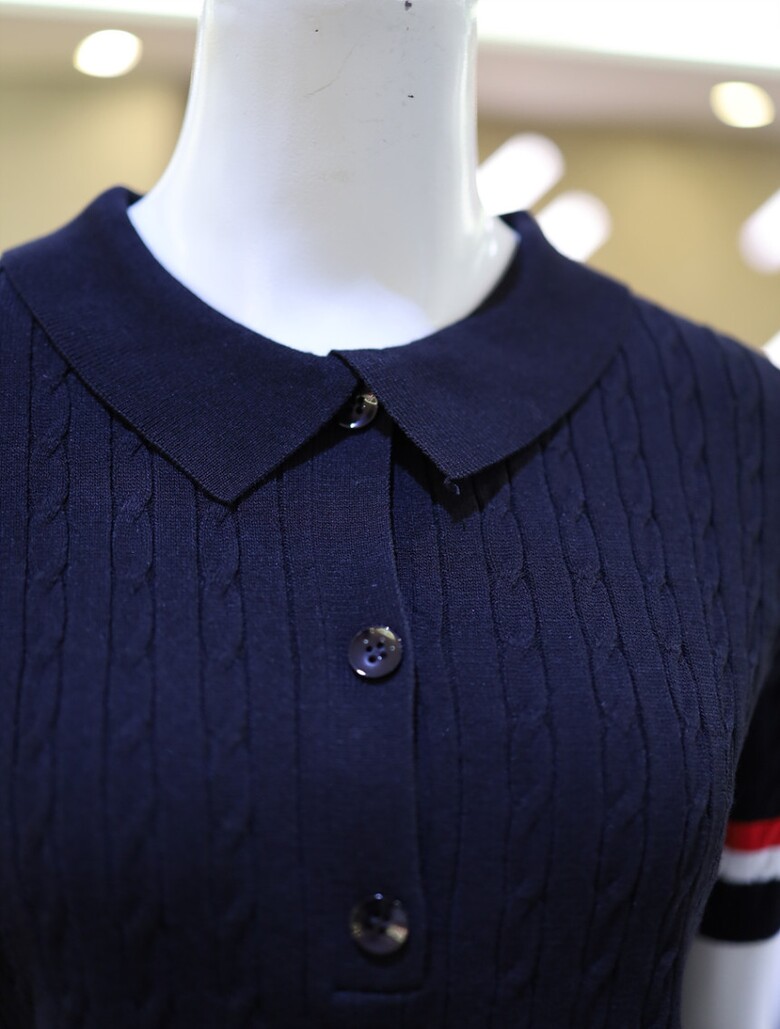 여성 미니카라 상의 버튼 케이블 반팔 니트 DQCPKR230