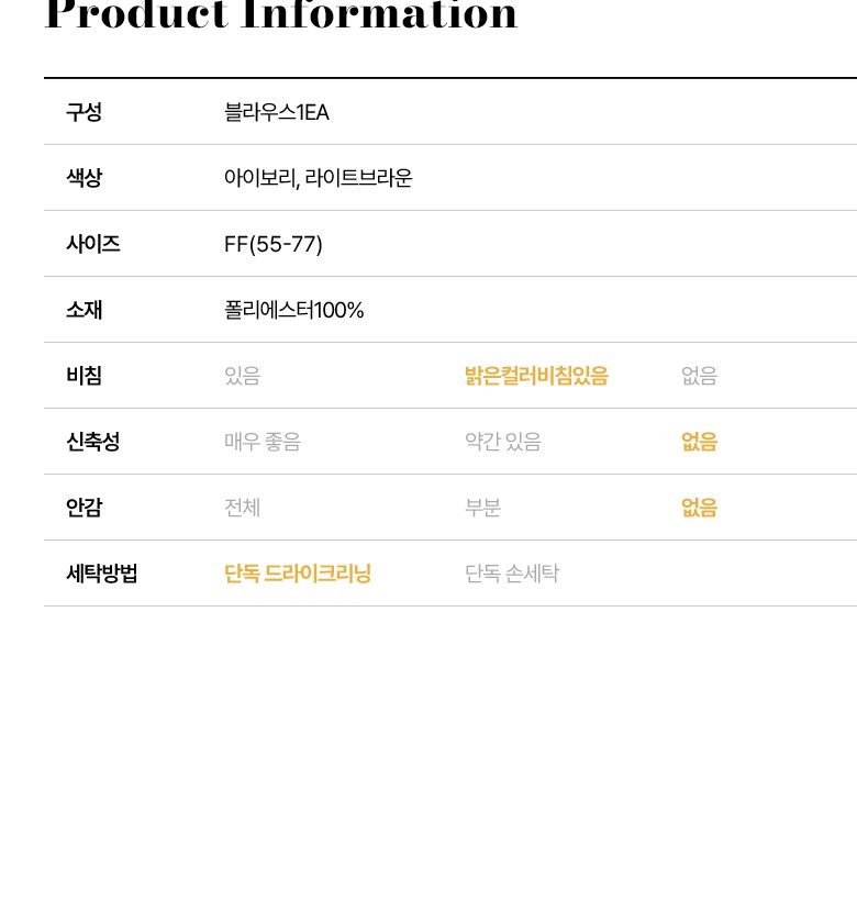 | 6. 세탁방법 및 취급시 주의사항 | 드라이클리닝 |