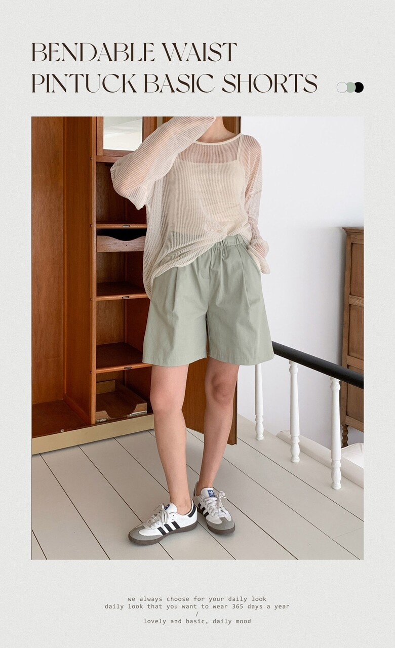 [ 배두나 허리밴딩 핀턱 베이직 숏 팬츠 ]