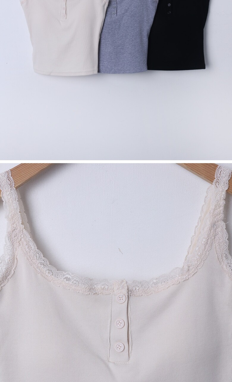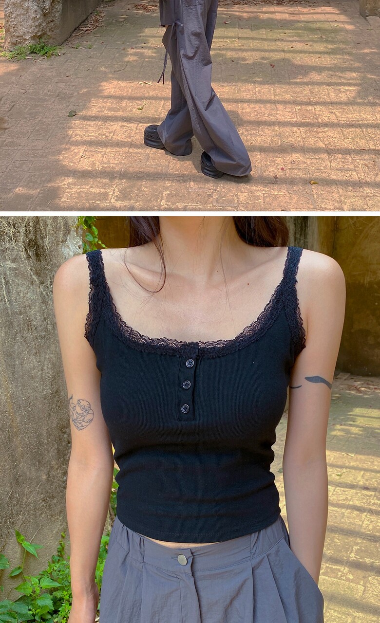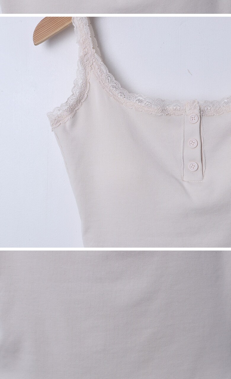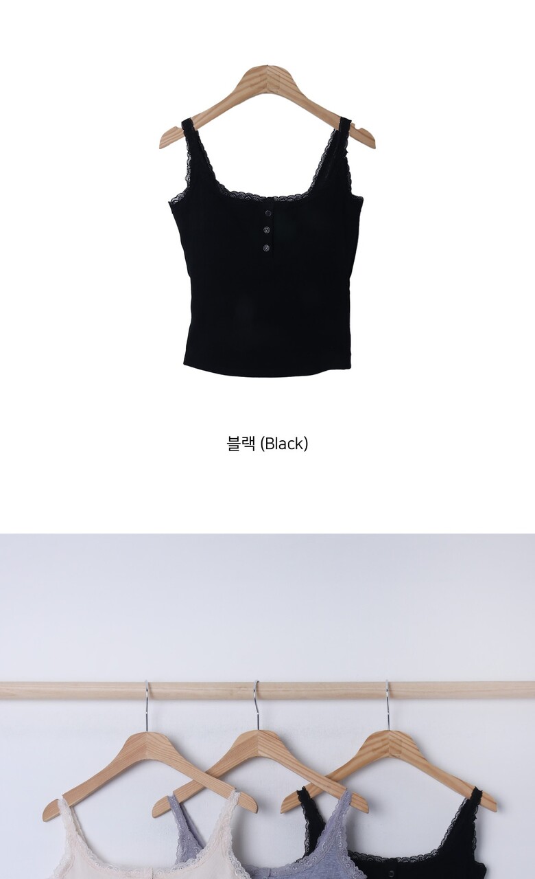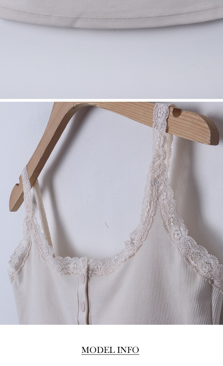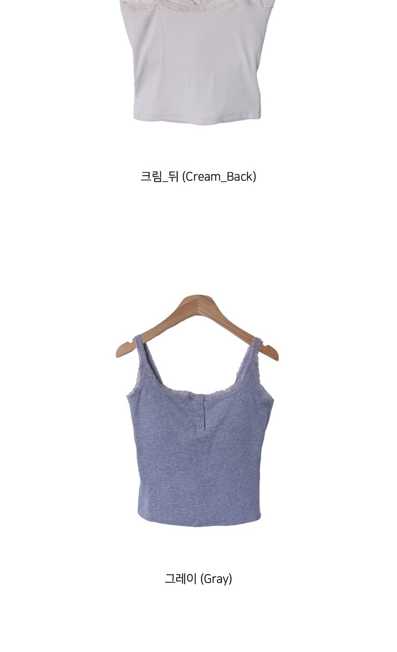 [ 히스카 라운드넥 레이스 끈 단추 디테일 페미닌 캡 나시 ]