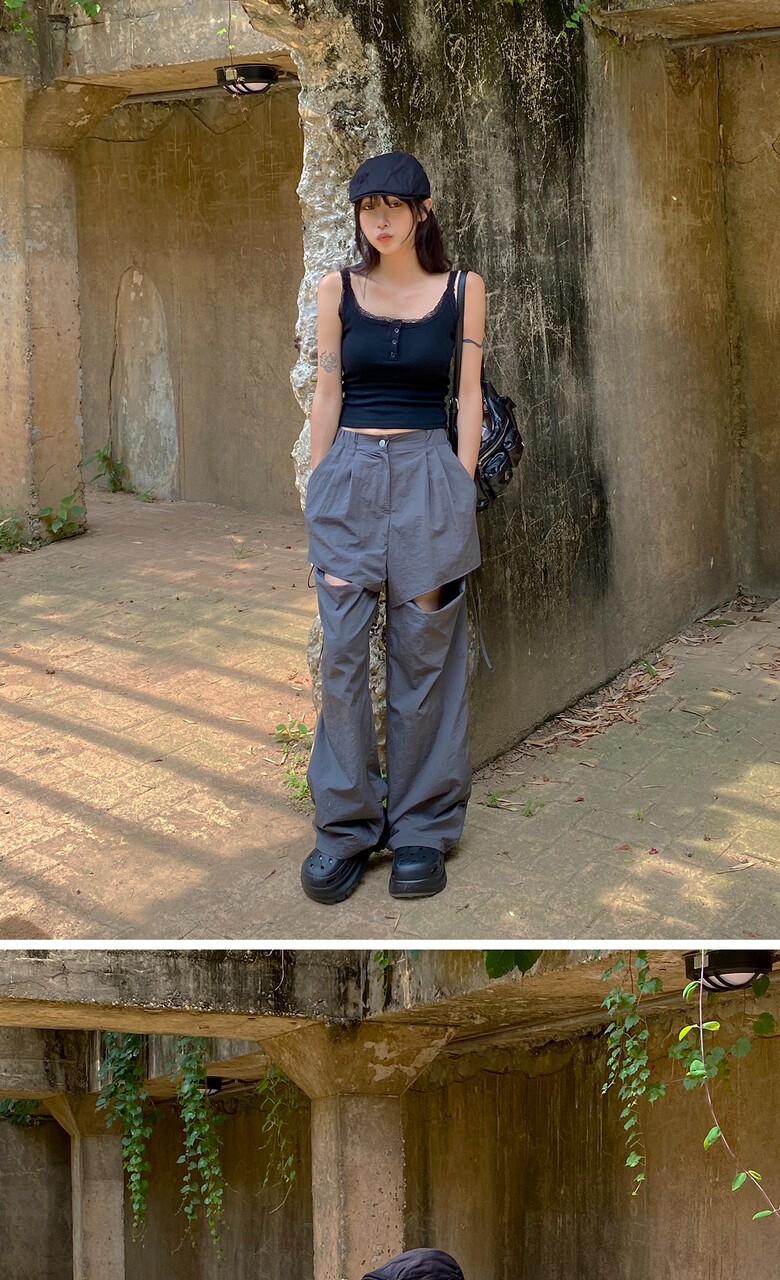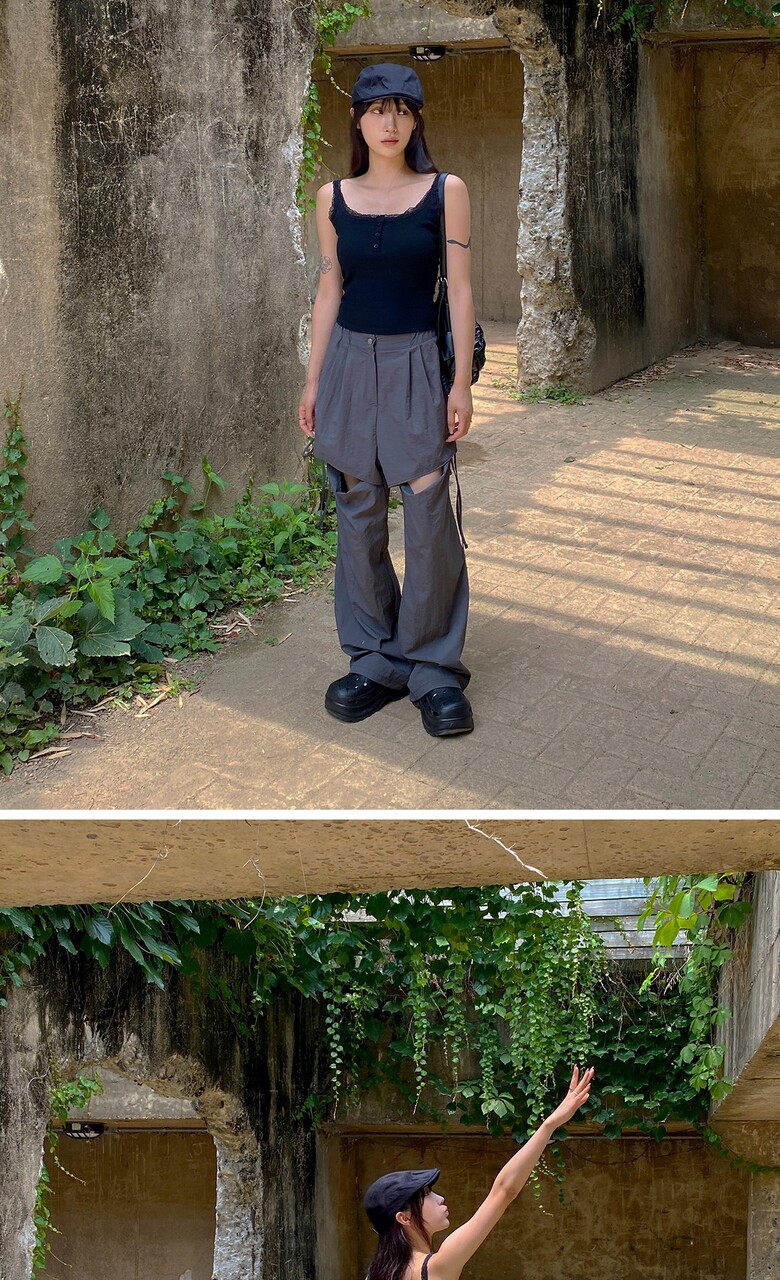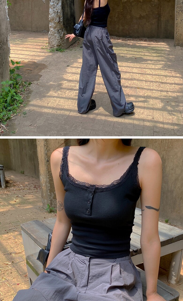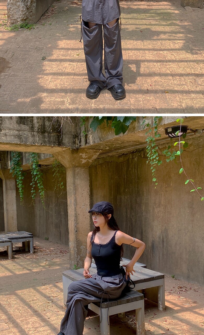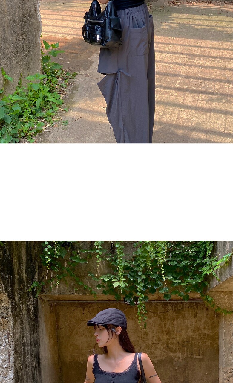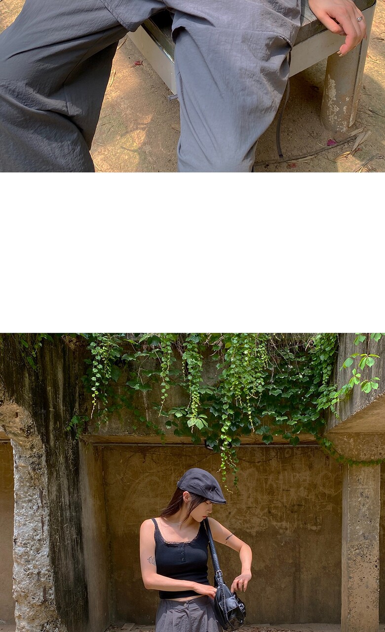 [ 히스카 라운드넥 레이스 끈 단추 디테일 페미닌 캡 나시 ]