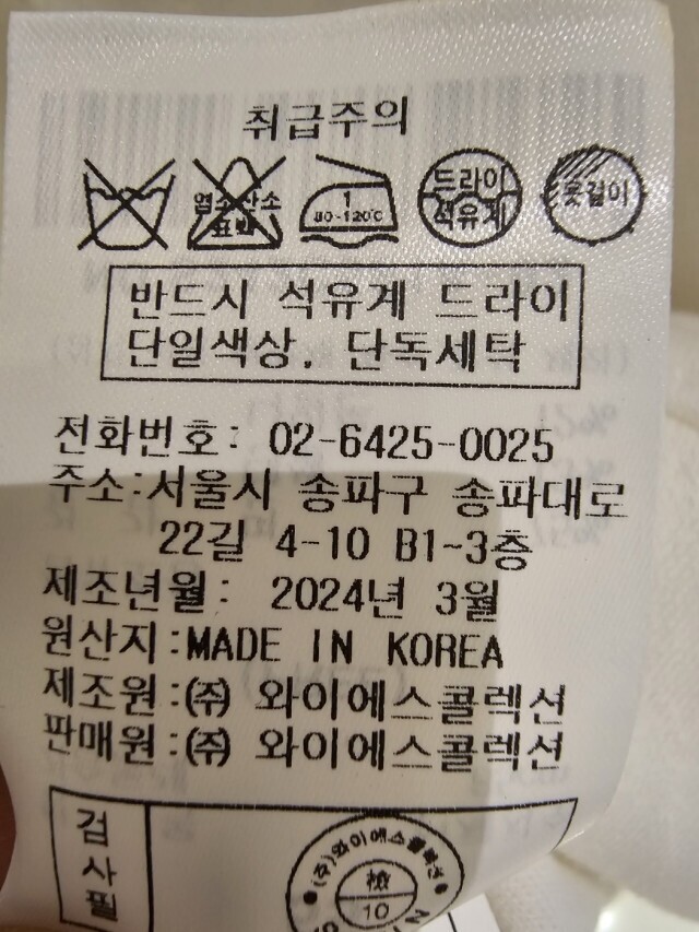 6. 세탁방법 및 취급시 주의사항 | 상품상세참조 |