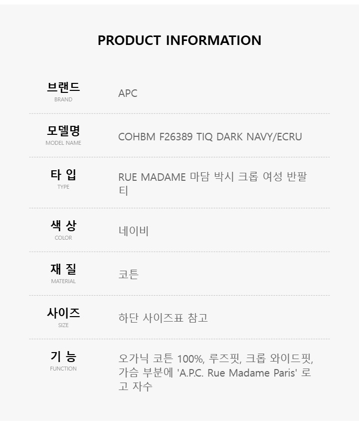 아페쎄 COHBM F26389 TIQ DARK NAVY/ECRU DENISE 데니스 여성 반팔티