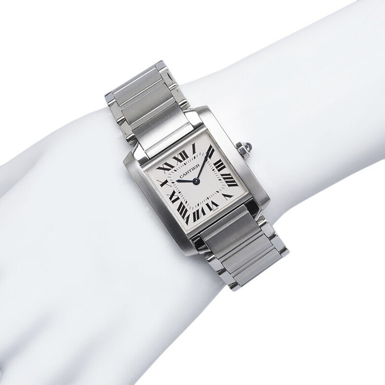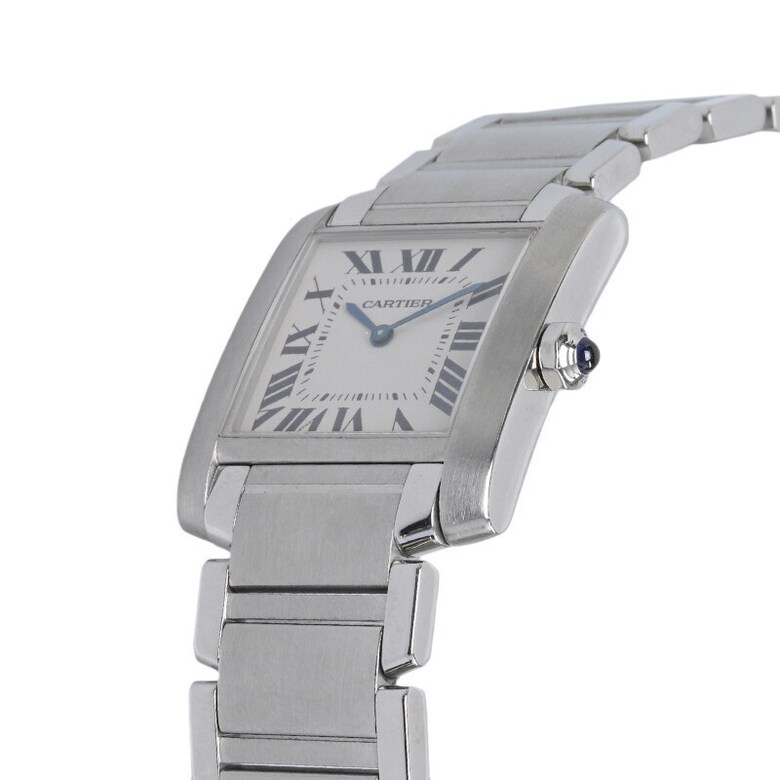 [중고명품] 까르띠에 실버 화이트 탱크 프랑세즈 쿼츠 스틸 시계 25mm