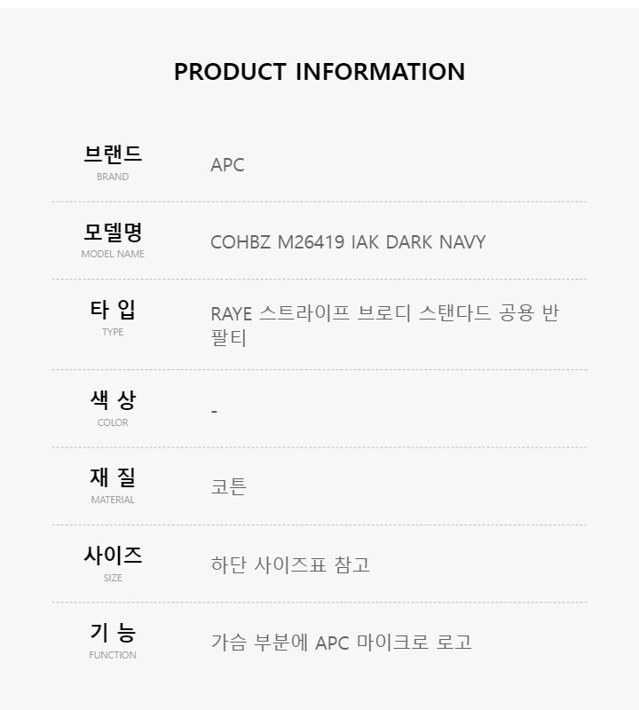[명품] COHBZ M26419 IAK DARK NAVY 공용 반팔티