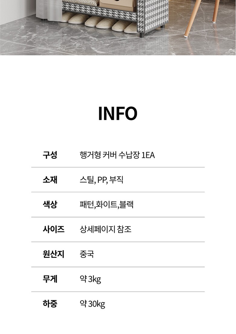 1. 품명 | [오송] 행거형 커버 수납장 패턴 소형 |