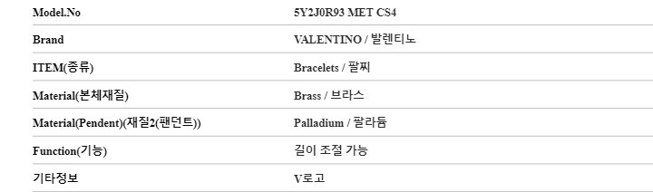 7. 주요 사양 | 브라스 팔찌 |