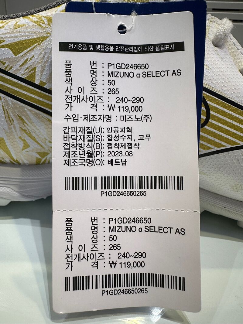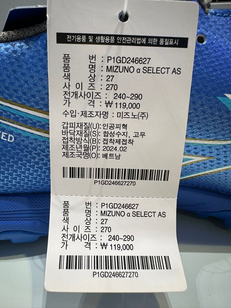 2. 크기, 중량 | 미즈노 풋살화 알파 셀렉트 AS P1GD2466 |