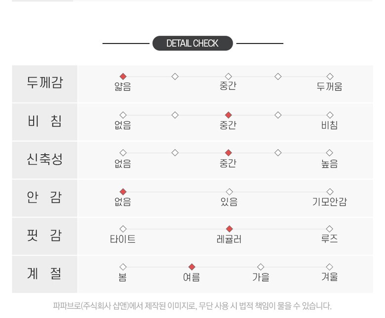 1. 제품 소재 (섬유의 조성 또는 혼용률을 백분율로 표시, 기능성인 경우 성적서 또는 허가서) | 면95%,스판5% |