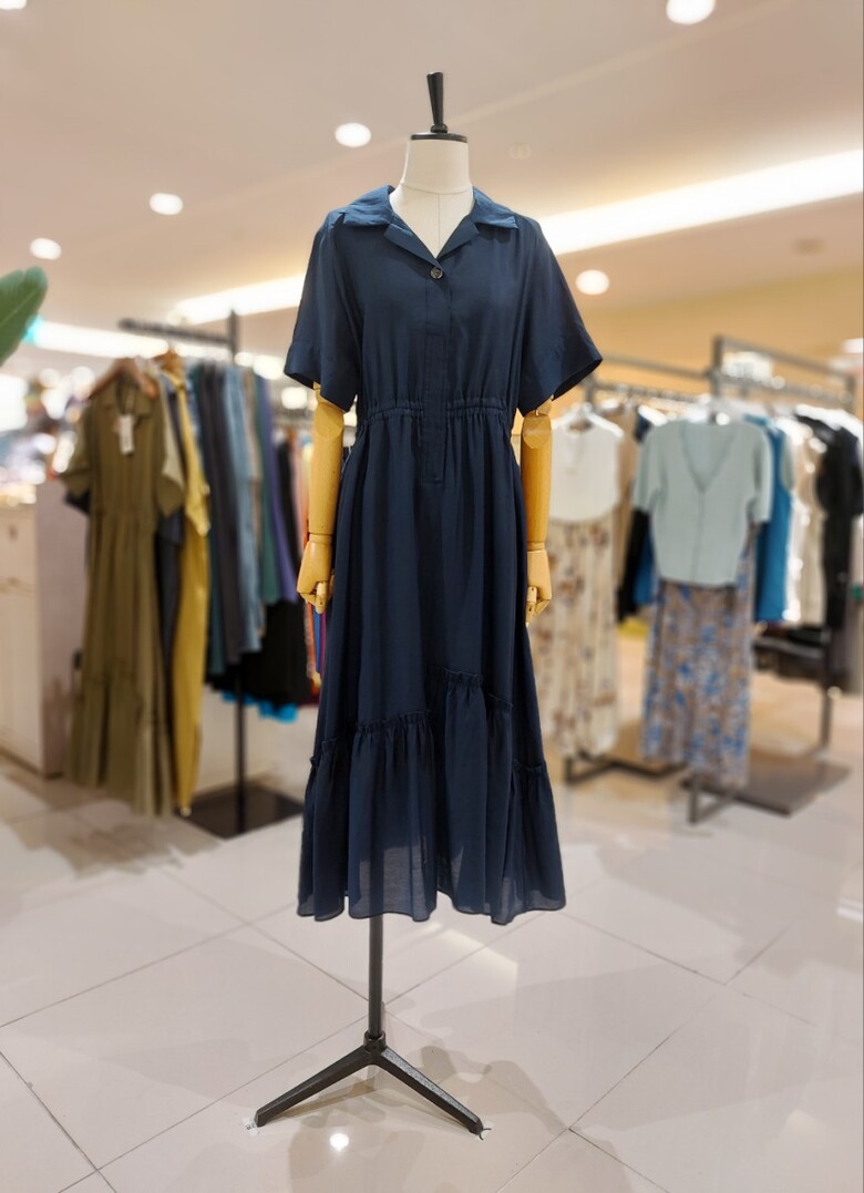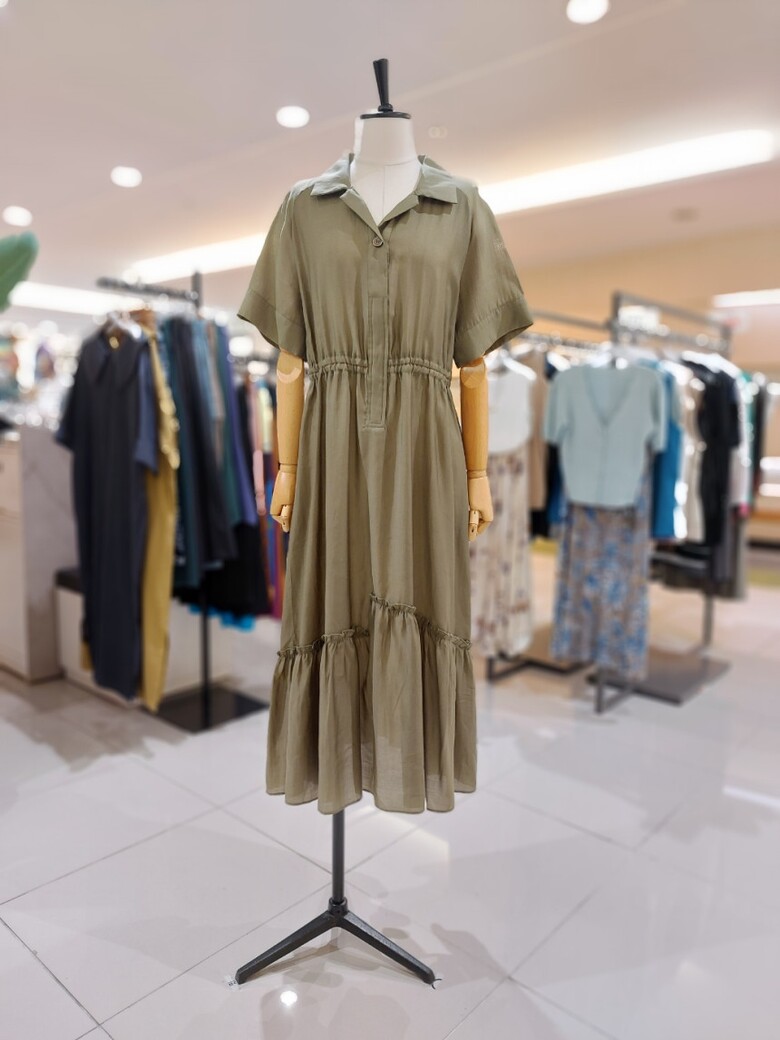 카라넥에 허리 밴딩으로 날씬해 보이고