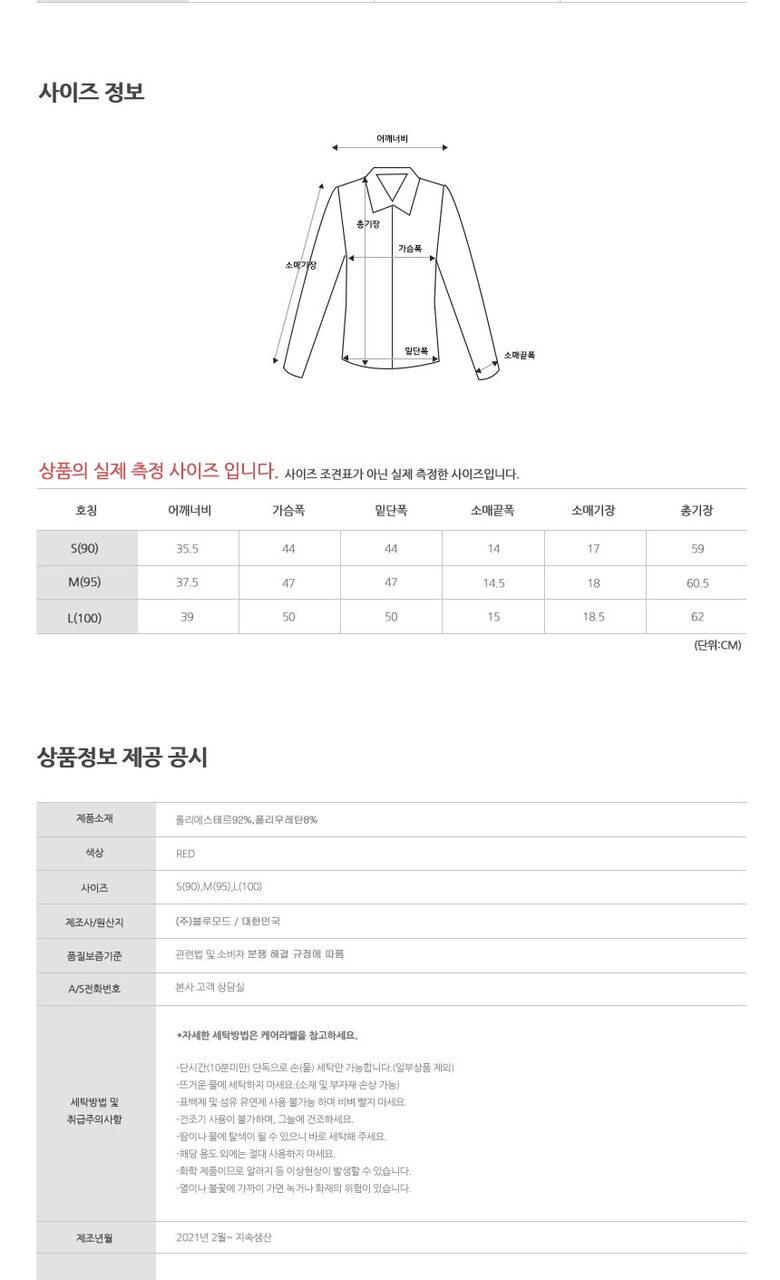 • 처음 배송된 상품상태와 다를 경우(세탁/착용 후 외출하신 경우) 반품이 불가합니다.