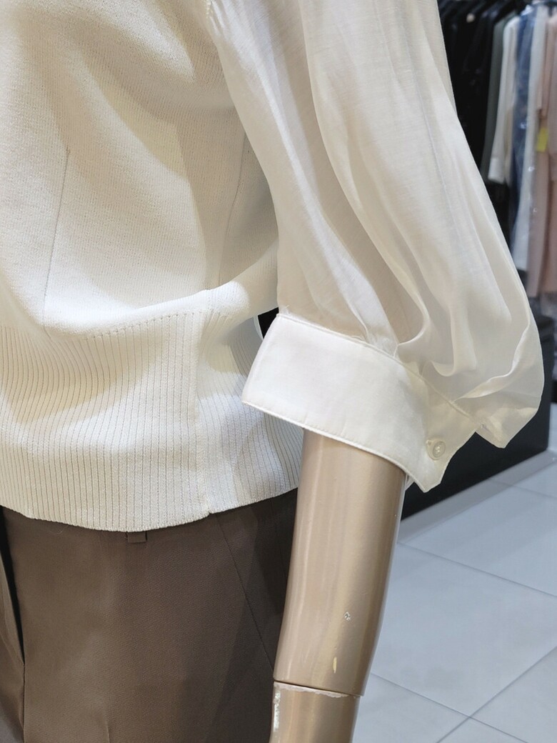 베이직한 디자인에 슬리브 배색과 퍼프 디자인으로