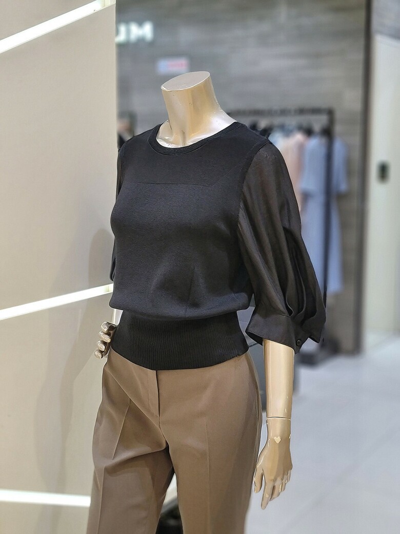 라운드넥 퍼프 소매 니트 MYBGKU3180