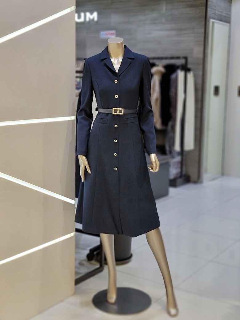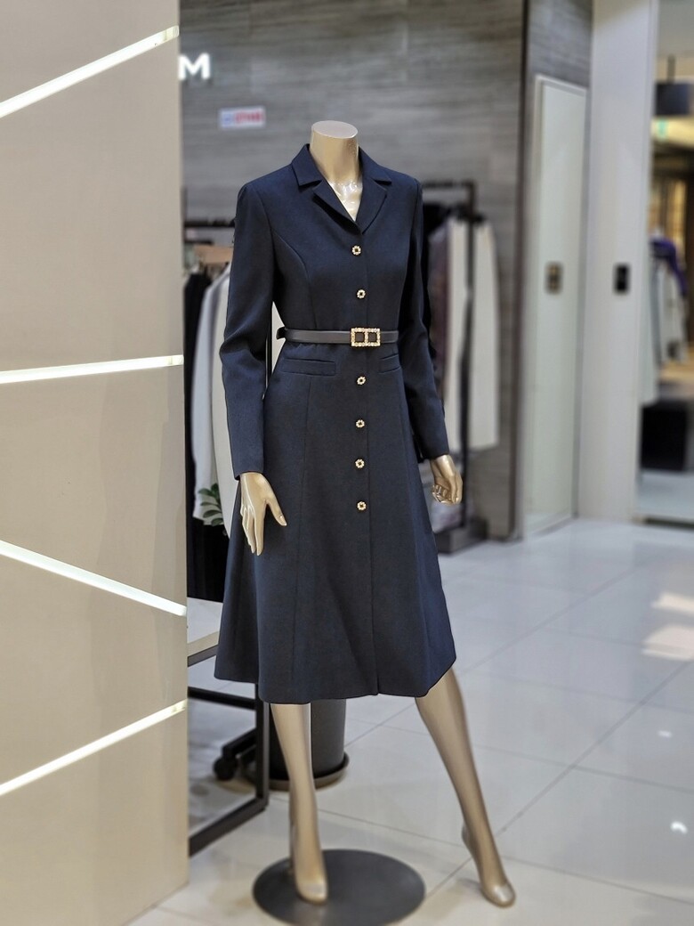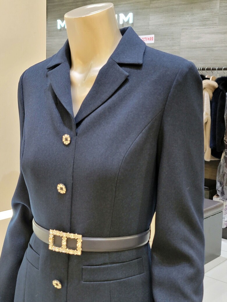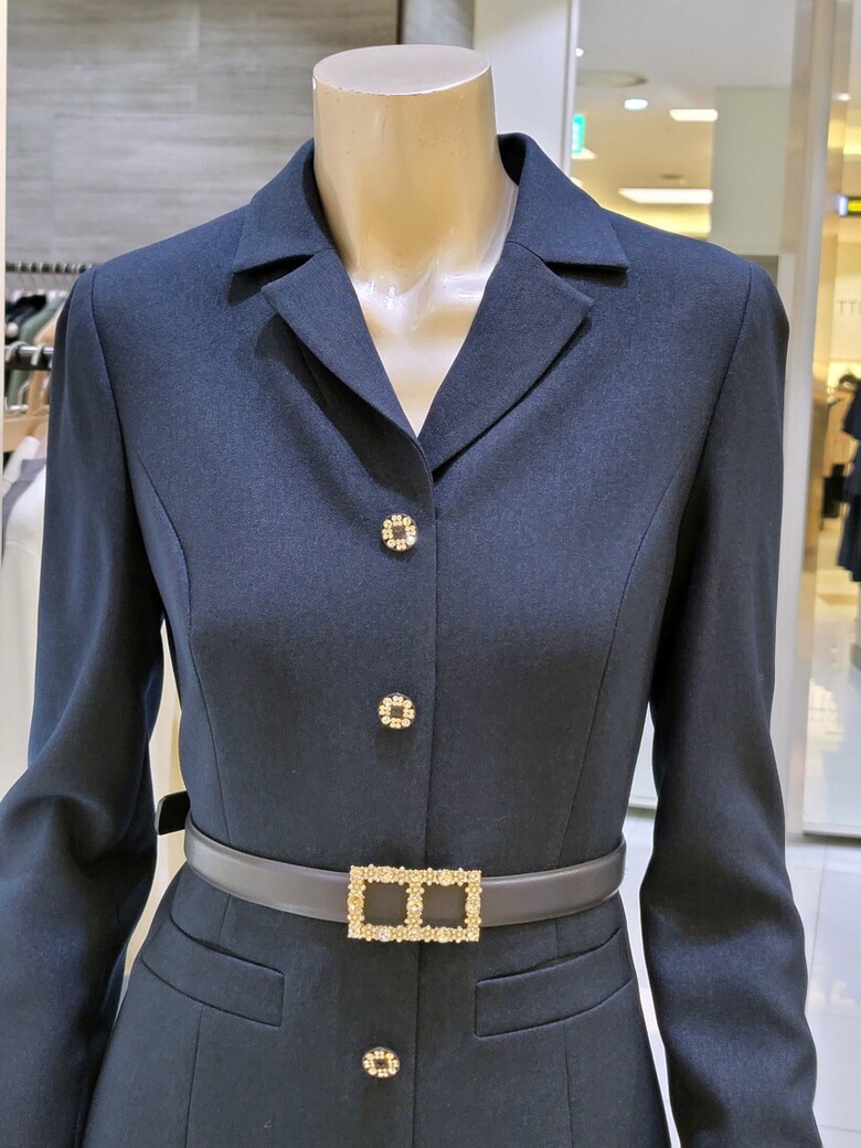 테일러드 칼라 디자인과 쥬얼 버튼 장식이 스타일리시한
