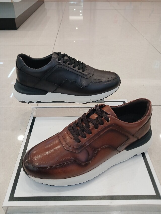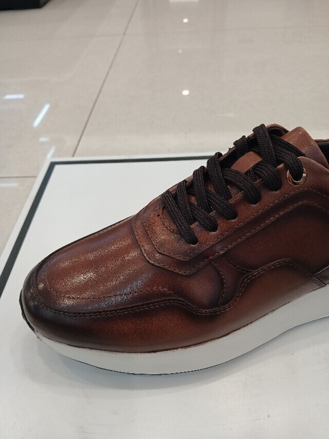 굽높이 약5cm의 높이에 천연소가죽소재를 사용하여 제작된 남성 스니커즈입니다