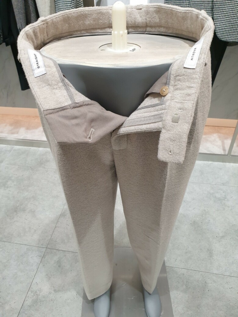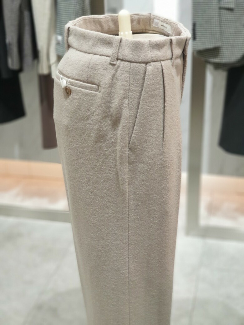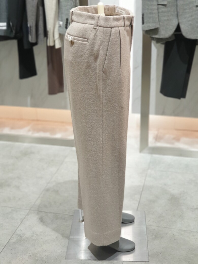울 부클 저지로 트랜디한 와이드 팬츠입니다