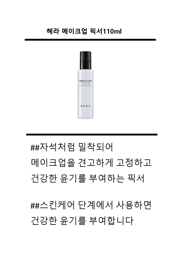 | 9. 사용 시 주의사항 | ※ 화장품을 사용하여 다음과 같이 이상이 있을 경우 사용을 중지할 것이며 계속사용하면 증상을 악화시키므로 피부과 전문의 등에게 상담할 것 1. 사용상 붉은반점, 부어오름, 가려움증, 자극 등의 이상이 있을경우 2. 적용부의가 직사광선에 의해 위와 같은 이상이 있을 경우 3. 상처가 있는 부위, 습진 및 피부염 등의 이상이 있는 부위에는 사용을 하지 말것 4. 알코올류, 에탄올, 수용성(알코올 함유 제품에 해당)/ 화기에 주의할 것. |