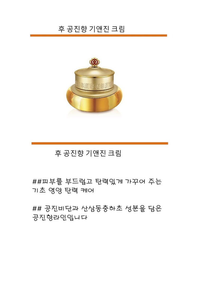 | 7. 주요성분 | 정제수, 프로판디올, 스쿠알란, 백화사설초추출물, 디메치콘, 부틸렌글라이콜, 감초추출물, 메도우폼씨오일, 글리세린, 작약추출물, 연꽃추출물, 옥죽추출물, 마돈나백합비늘줄기추출물, 지황추출물, 꿀, 녹차추출물, 인삼추출물, 하이드롤라이즈드인삼사포닌, 뽕나무뿌리추출물, 쉐어버터, 1, 2-헥산디올, C12-20알킬글루코사이드, C14-22알코올, 글리세릴스테아레이트, 글리세릴카프릴레이트, 라우릭애씨드, 메톡시피이지-114/폴리엡실론카프롤락톤, 미리스틱애씨드, 베헤닐알코올, 스테아릭애씨드, 아라키딜글루코사이드, 아라키딜알코올, 에칠헥실글리세린, 잔탄검, 카보머, 카프릴릴글라이콜, 트로메타민, 팔미틱애씨드, 하이드로제네이티드레시틴, 디소듐이디티에이, 페녹시에탄올, 향료, 제라니올, 시트랄, 리날룰, 시트로넬올, 리모넨 확인 |