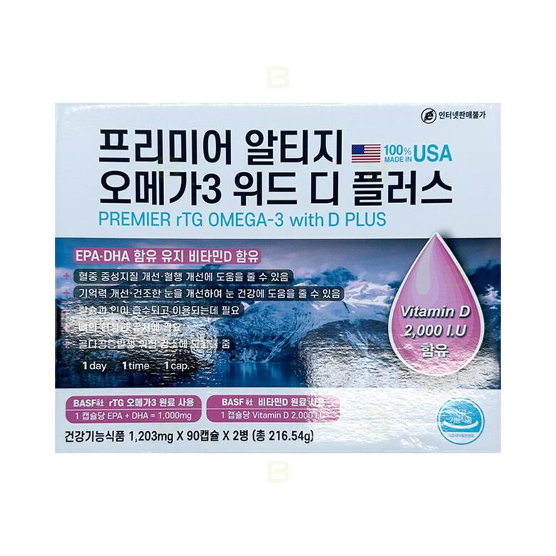 약국전용 RTG 오메가3 위드 디 플러스 EPA DHA 비타민D 6개월분