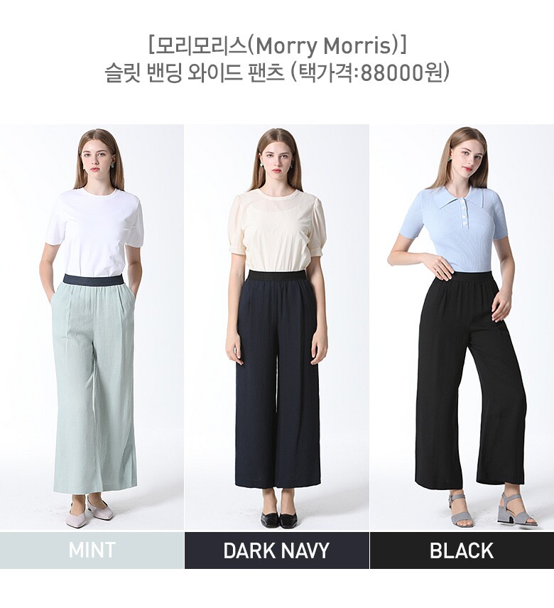▶ ITEM : 슬릿 밴딩 와이드 팬츠 ▶ NUMBER : MAWWSLM21140 ▶ FABRIC : [겉감] 폴리에스터51%, 레이온49% ▶ WASHING : 단독드라이(이염.필링.고온건조 다림질불가) ▶ 원 산 지 : 베트남 ▶ 색 상 : 블랙(BK),다크네이비(DN),민트(MI)