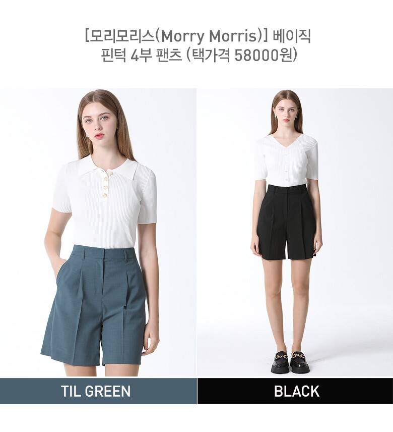 [모리모리스(Morry Morris)] 베이직 핀턱 4부 팬츠