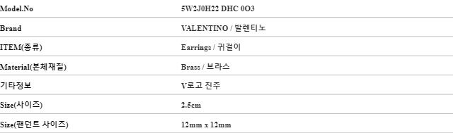 발렌티노 5W2J0H22 DHC 0O3 (J0H22 DHC 0O3) 가라바니 V로고 진주 여성 귀걸이