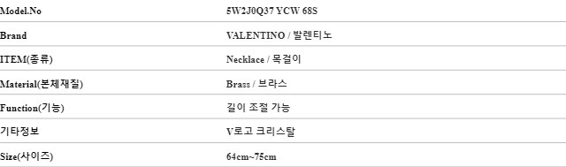 발렌티노 5W2J0Q37 YCW 68S (J0Q37 YCW 68S) 가라바니 V로고 크리스탈 여성 목걸이