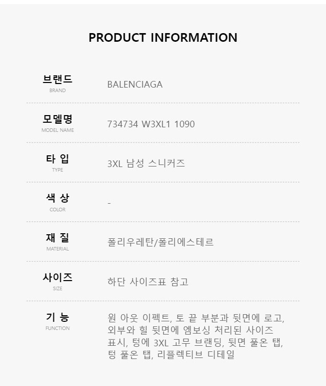 발렌시아가 734734 W3XL1 1090 3XL 남성 스니커즈 신발